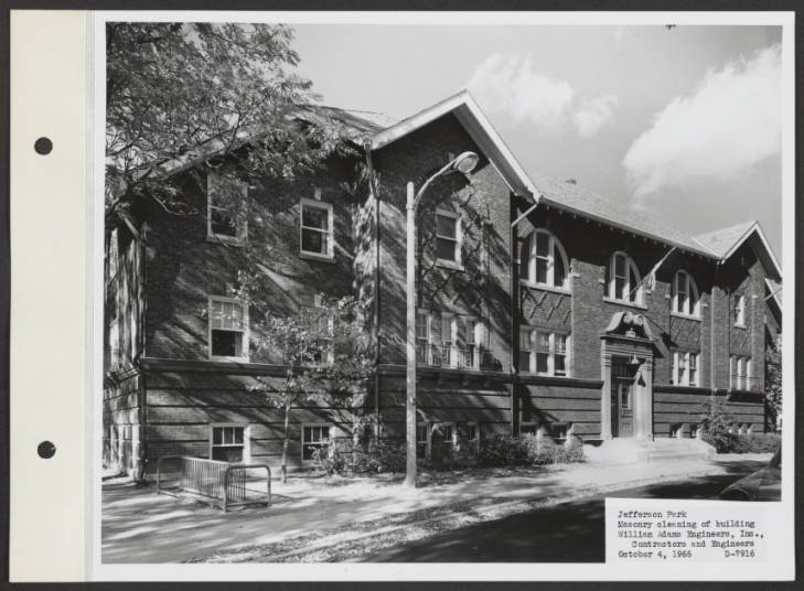 The establishment of a park in a community is a sign that the population is significant enough to make use of it. The field house sitting in the middle of Jefferson Memorial Park featured a brick building, with a steep roof encased by multiple gables, wooden framed windows and an eye-catching embellishment surrounding the door; a Tudor style building. Observing this style allowed me to recognize when it may have been built; anywhere from 1900 to 1940. Upon further research, I found that the land for the park was bought by the Jefferson Park District in 1920 and by 1930 it was landscaped and the field house was built. Given my knowledge of the initial founding of the neighborhood by Elijah Wentworth, I know that this was one of the many facilities designed in the early 1900s to serve the growing population.